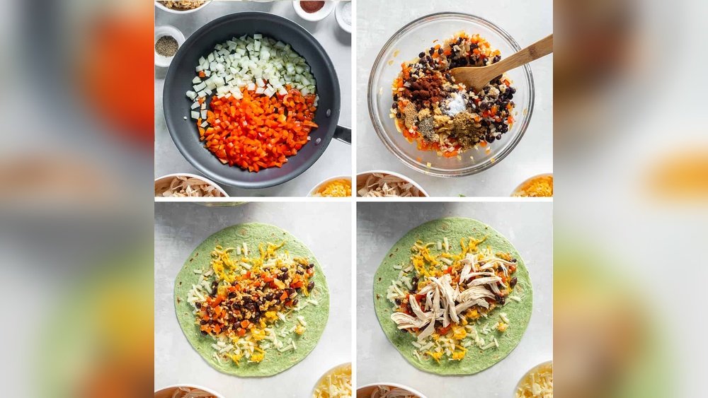 Start by chopping fresh vegetables. Use onions, bell peppers, and tomatoes for color and flavor. Add canned corn and black beans for texture. Mix everything with spices like cumin and chili powder. Stir well to blend the flavors. Let the filling rest for a few minutes to absorb spices.