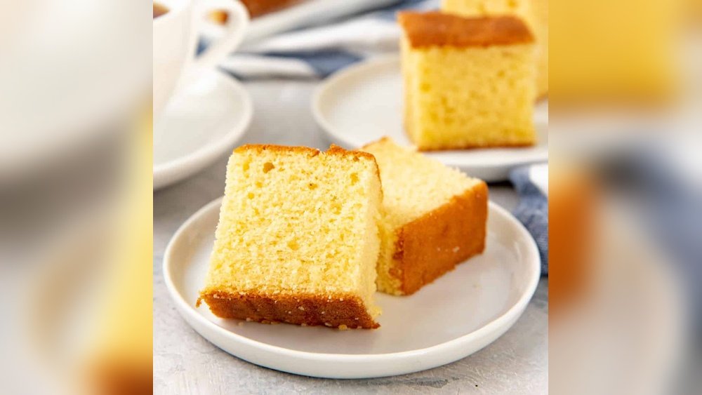 Cut the cake into even slices for a neat look. Place slices on a clean white plate to highlight its golden color. A light dusting of powdered sugar adds a sweet touch. Garnish with fresh fruit like mango or berries for color and freshness. Serve at room temperature to enjoy its soft texture.