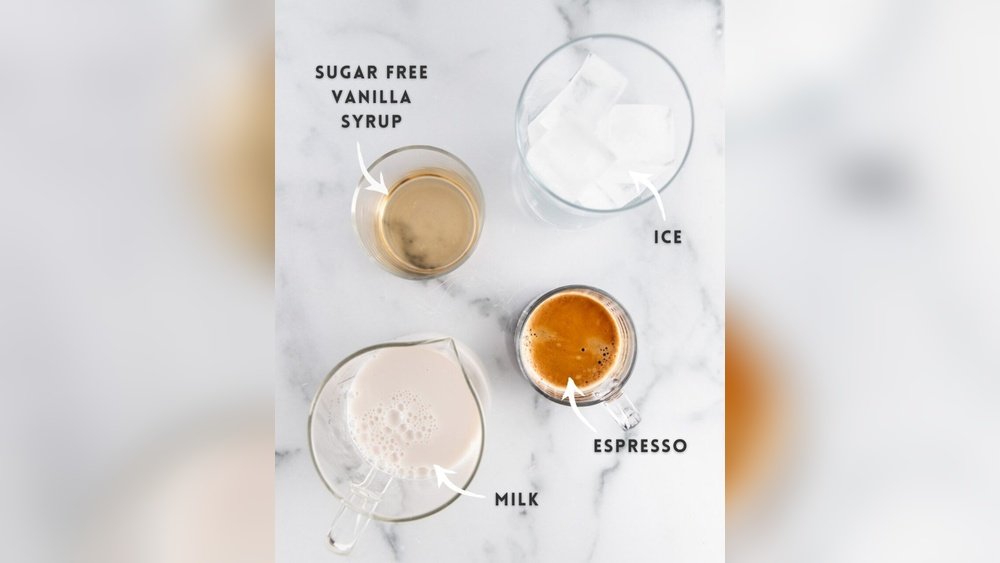 You need espresso, skim milk, sugar-free vanilla syrup, and ice. These create a low-calorie, flavorful latte that’s perfect for a healthy treat.