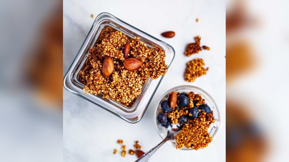 Many nuts and seeds are rich in antioxidants and vitamins like vitamin E. These protect your cells from damage. The crunchiness also makes the granola more satisfying to eat.