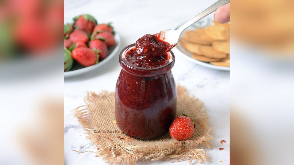 Strawberry chutney complements grilled meats, cheese platters, sandwiches, and Indian snacks like samosas. Its sweet and tangy taste enhances many dishes.