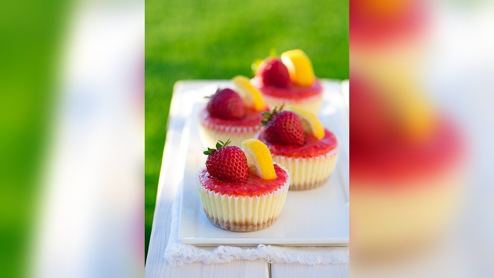Decorating with fresh strawberries adds bright color and fresh flavor to your cheesecake. Strawberries make the dessert look inviting and feel light. The natural red hue contrasts well with creamy lemon and cheesecake layers.
