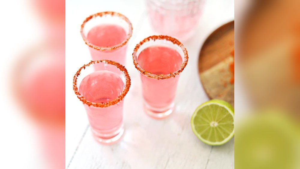 Choose small, clear shot glasses to show off the pink color. Thick-bottomed glasses add a nice feel in hand. Frosted or colored glasses can create a fun look too.